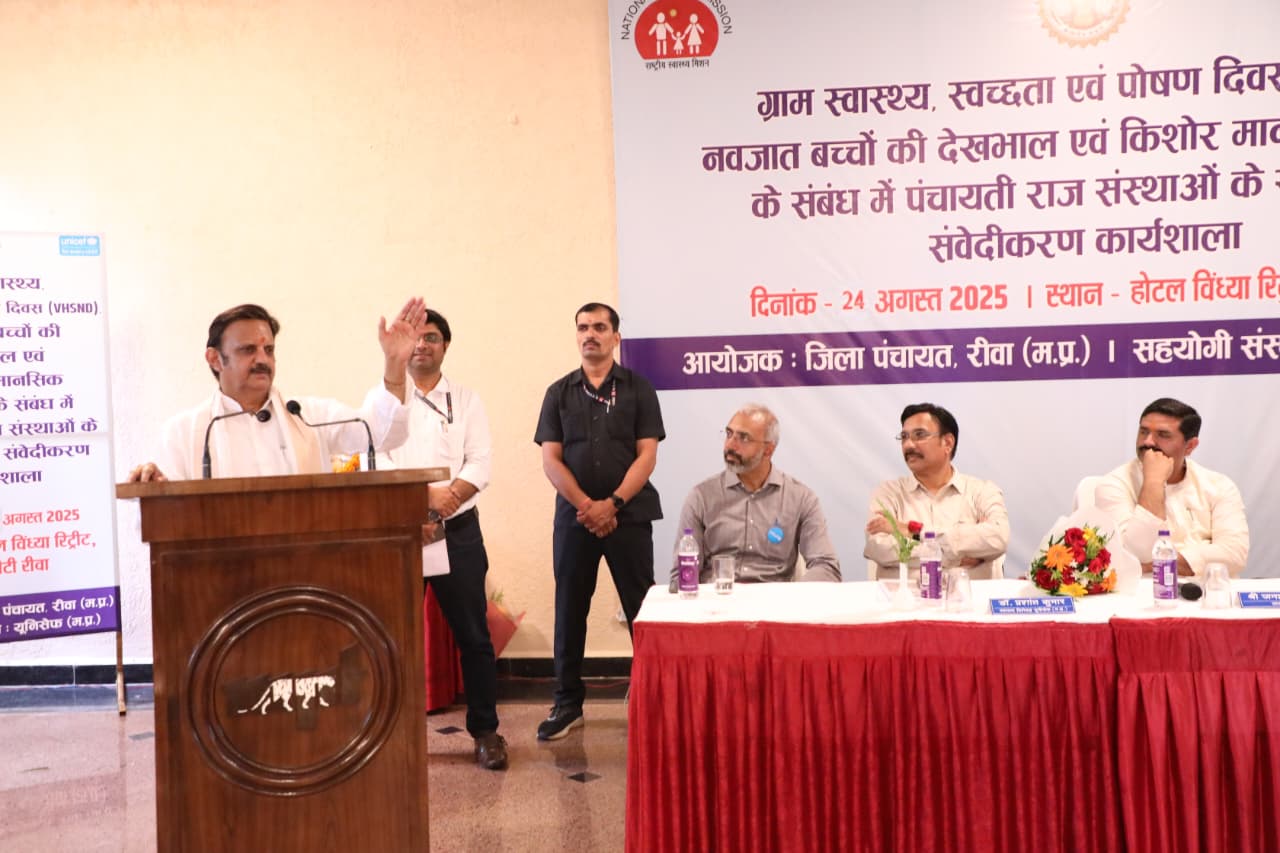 उप मुख्यमंत्री राजेन्द्र शुक्ल ने कहा कि मातृ मृत्यु दर व नवजात शिशु मृत्यु दर को कम करने में समन्वित प्रयास आवश्यक है। रीवा जिले में इस चुनौती को अवसर के तौर पर लेना होगा। जनप्रतिनिधि एवं स्वास्थ्य व महिला बाल विकास के मैदानी अमले के अधिकारी-कर्मचारी लोगों को जागरूक करें तथा मातृ मृत्यु दर व शिशु मृत्यु दर को न्यून करने में अपनी भूमिका का निर्वहन करें। उप मुख्यमंत्री शुक्ल ने रीवा में ग्राम स्वास्थ्य स्वच्छता एवं पोषण दिवस पर जिला प्रशासन एवं यूनिसेफ के संयुक्त तत्वाधान में आयोजित नवजात बच्चों की देखभाल एवं किशोर मानसिक स्वास्थ्य के संबंध में पंचायतीराज संस्थाओं के सदस्यों की प्रशिक्षण कार्यशाला का शुभारंभ किया।