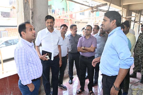 निमार्णाधीन शास्त्री बाजार परिसर के निरीक्षण के लिए पहुंचे कलेक्टर गौरव